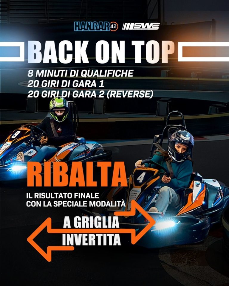 BACK ON TOP! è un evento spot — cioè una gara non presente tra le modalità a listino — che si corre nella nostra pista go-kart al coperto a Calenzano.
